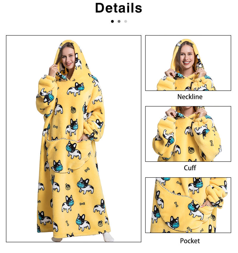 Custom Printing Factory Oversize Long Wearable Sherpa Flannel Fleece TV Cuddle Snuggle Blanket with Sleeves Hoodie Custom Pocket