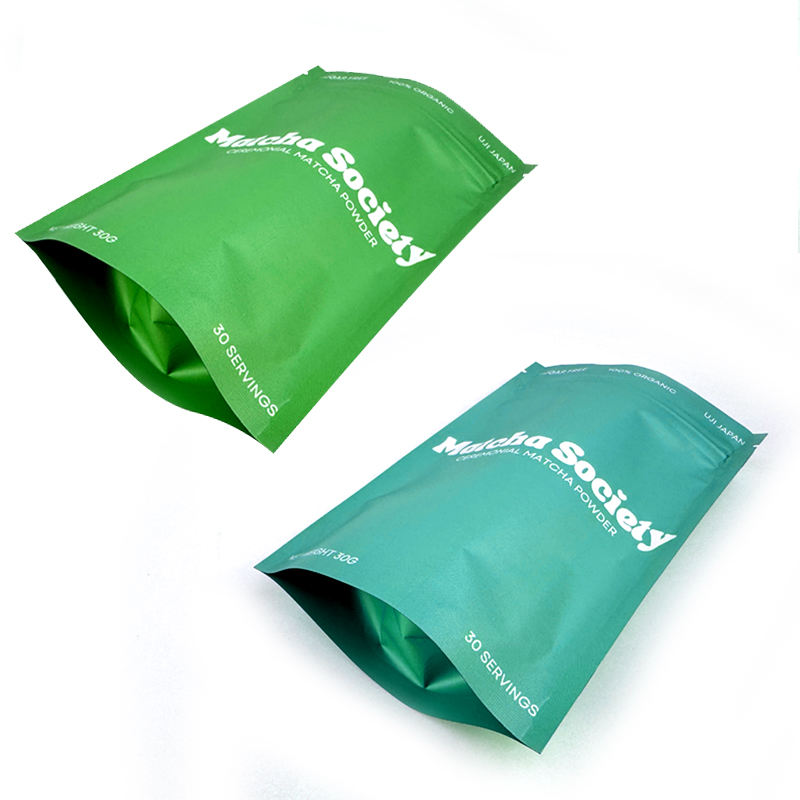 Custom Printing Food Grade Powder Packaging Bag Stand up Plastic Mylar Bag with Ziplock Matte Matcha Powder Packaging Pouch