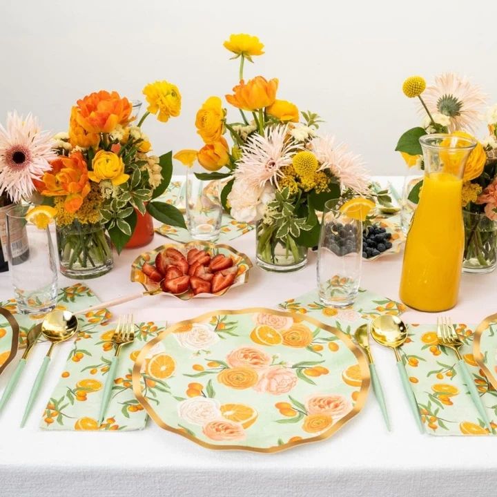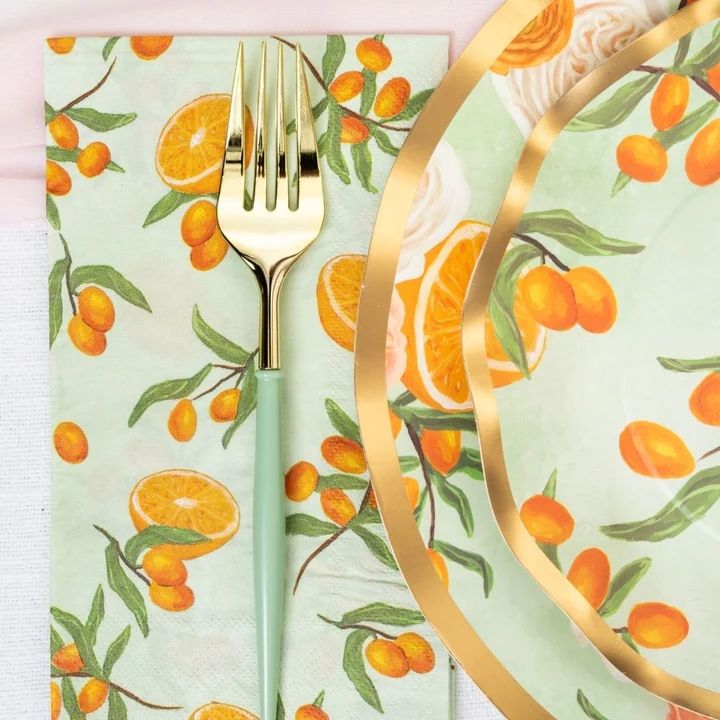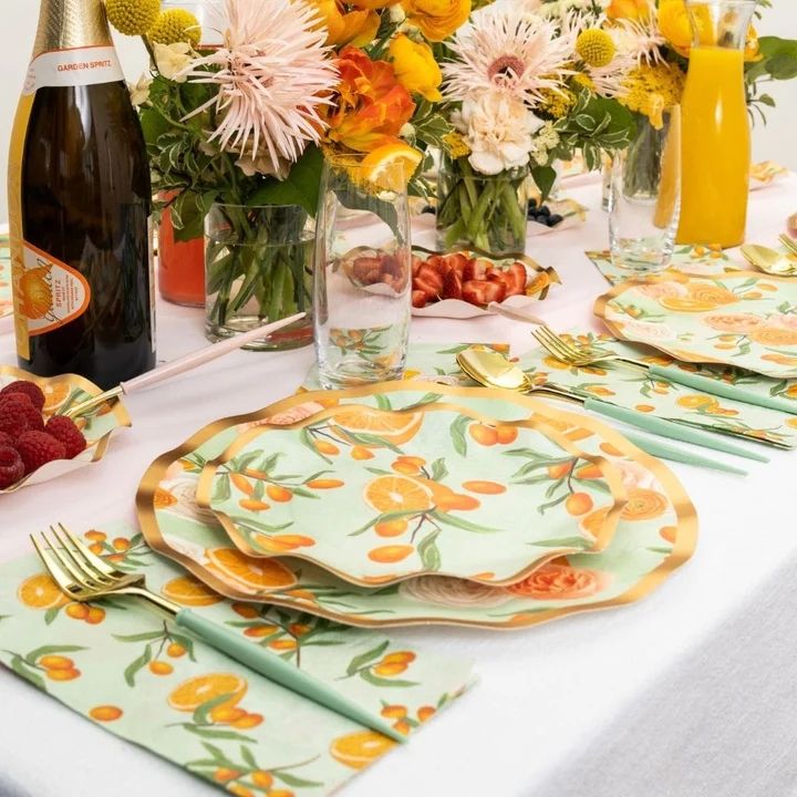 Custom Printing Gold Hot Stamping Rim Paper Plates Orange Pattern Party Tableware Disposable Custom Paper Plate Party Supplies