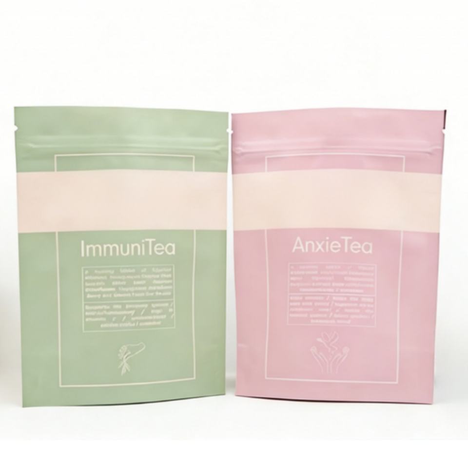 Custom Printing Logo Biodegradable Pla Tea Bag Paper Bag Doypack Resealable Food Bag for Sugar Snacks Kraft Paper Packaging Bag