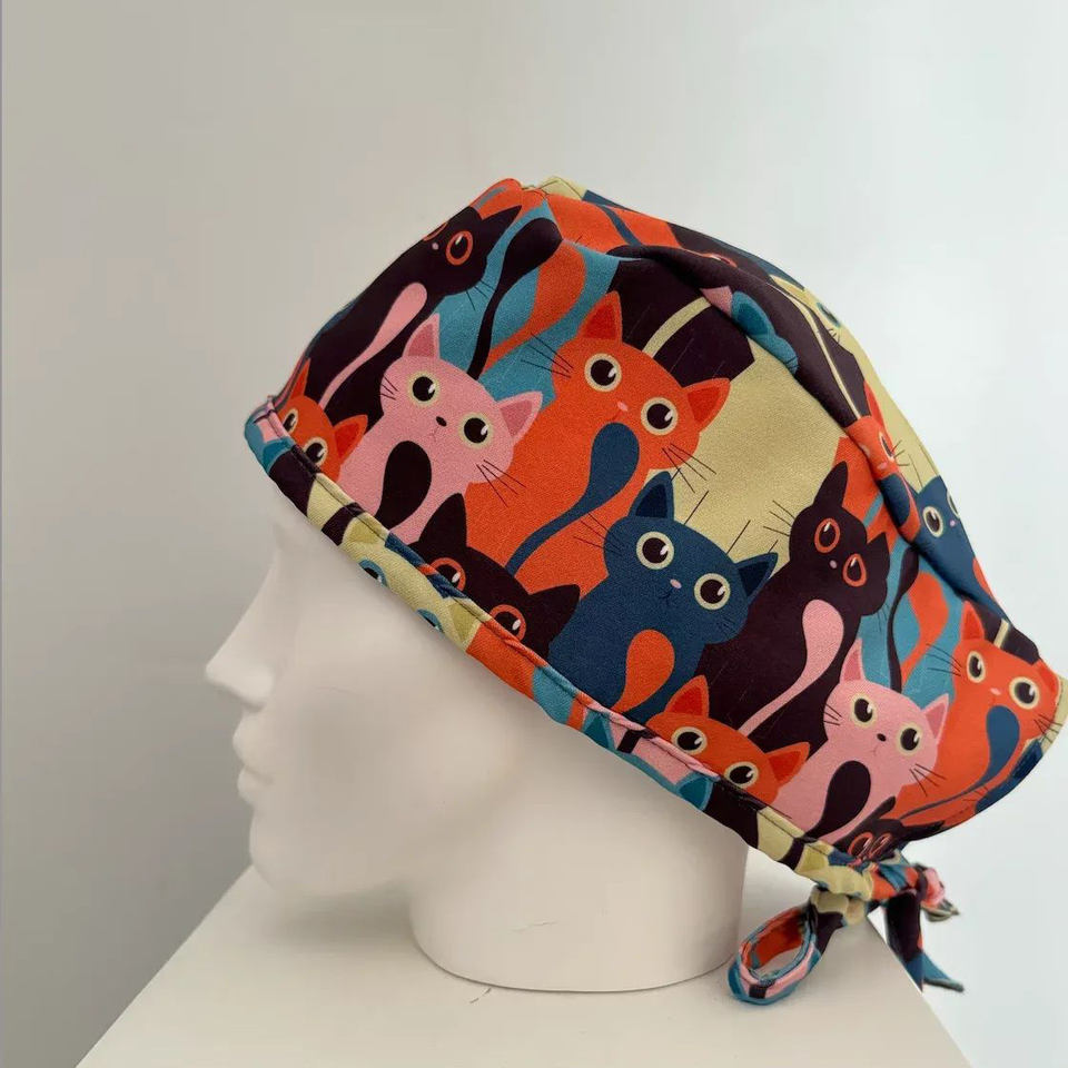 Custom Printing Tie Back Surgical Cap Nurse Doctor Dentist Scrub Hat Operating Room Headwear Cotton Fabric Medical Scrub Caps