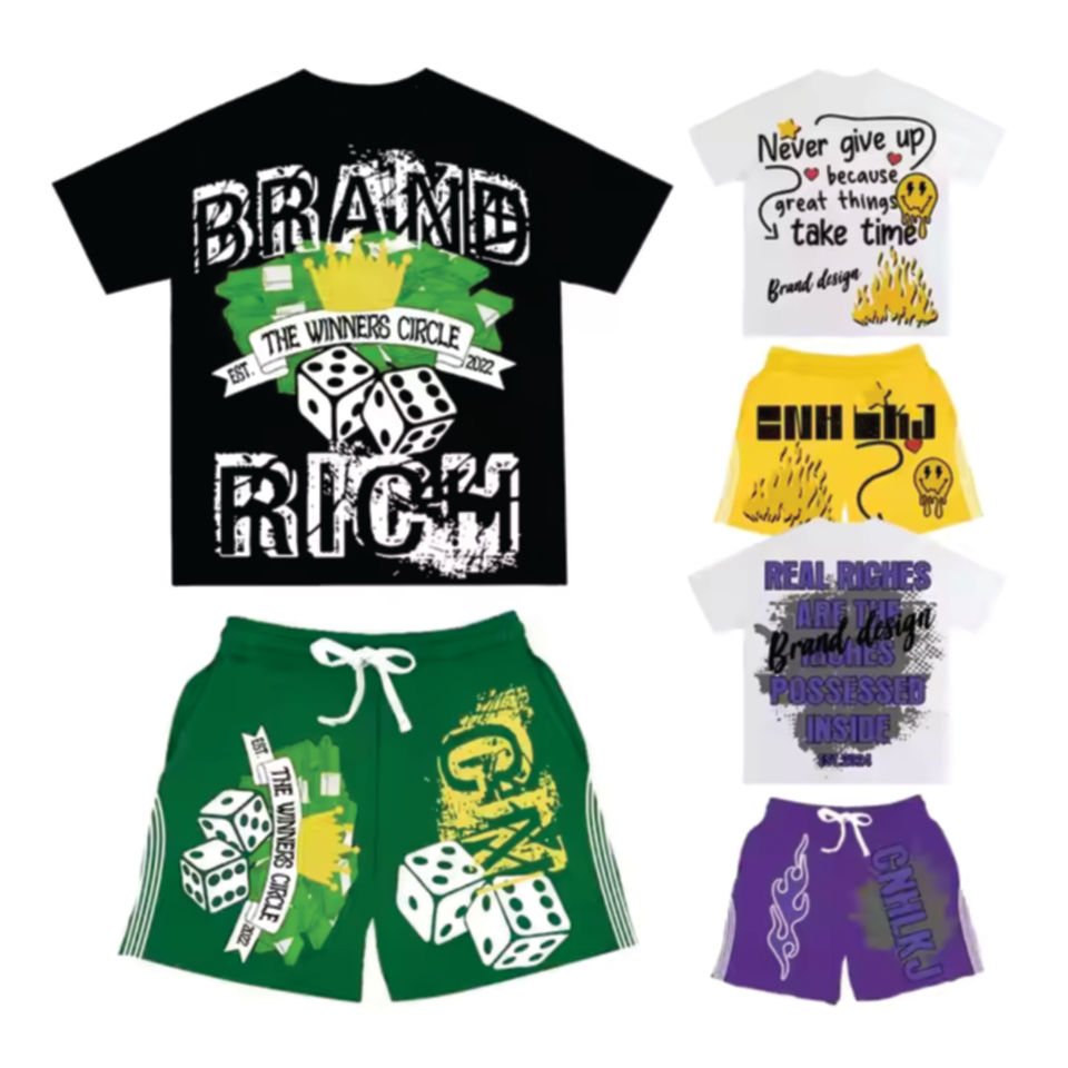 Custom Prints Cotton DTF Graphics Summer Trendy Casual Fashionable Oversized Tee Shirts for Men Women Adult's Top Shorts Combo