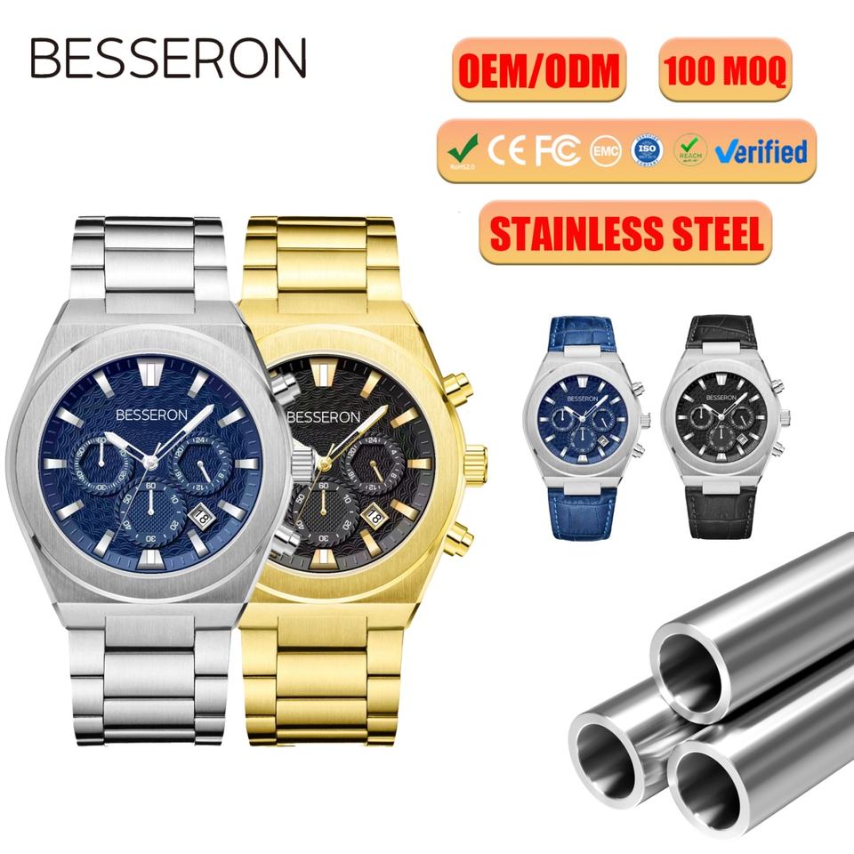 Custom Private Label Luxury Fashion Analog Charm Stainless Steel Quartz Chronograph Watch Men 42mm 5BAR Water Resistant Modern