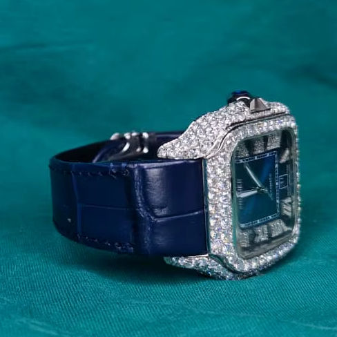 Custom Private Label Quartz Watch Logo Waterproof Bling Diamond Stainless Steel Band Blue Luxury Antique Fashion Men's Watch