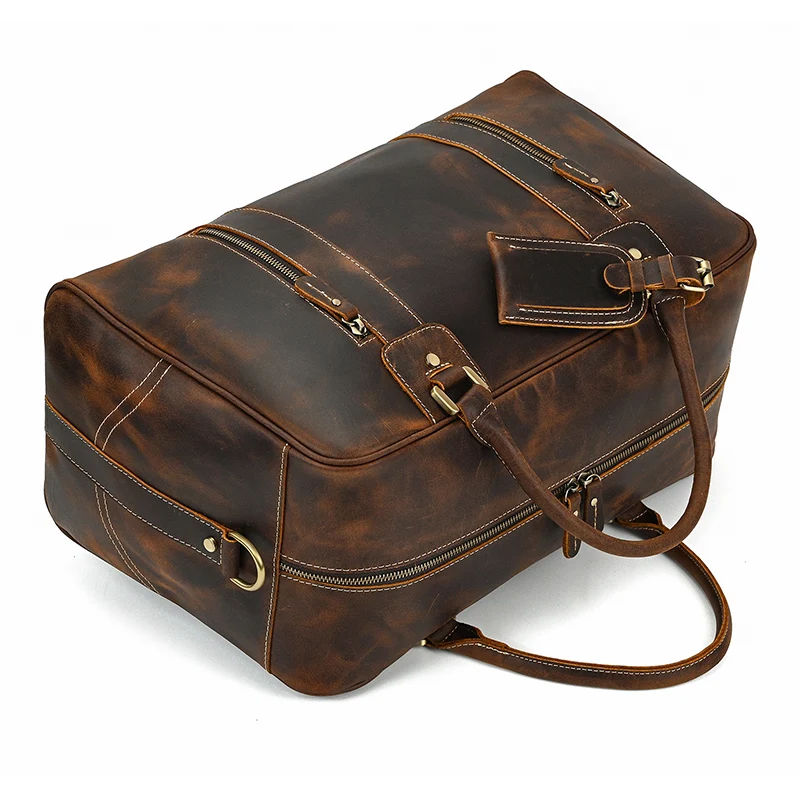 Custom Professional Genuine Leather Overnight Bag Luxury Travel Duffel Bag Blank Vegetable Leather High End Duffel Bags