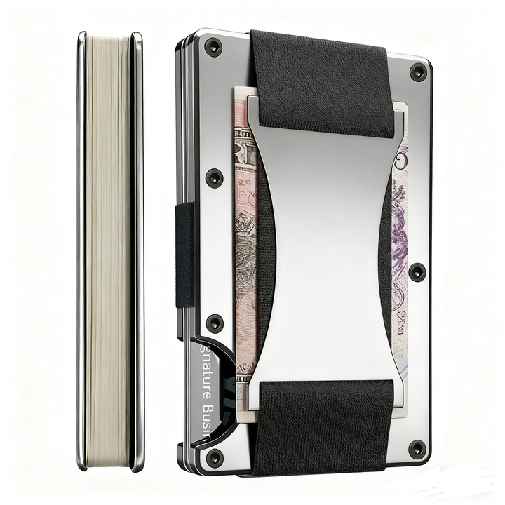 Custom Professional Mens Minimalist Wallet Aluminum Alloy RFID Blocking with Metal Money Clip, Slim & Lightweight