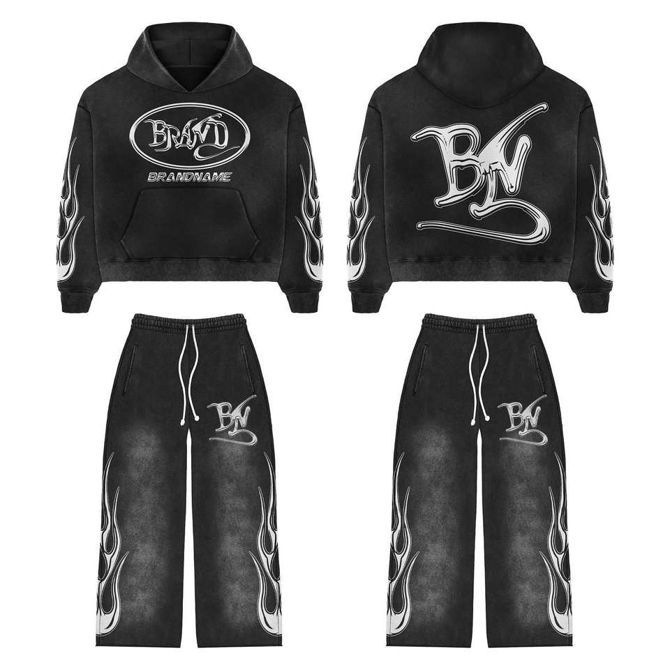 Custom Puff Print 500 Gsm Hoodie Unisex Cotton Stack Pants Sets Heavy Weight Training Jogging Tracksuits for Men Acid Wash