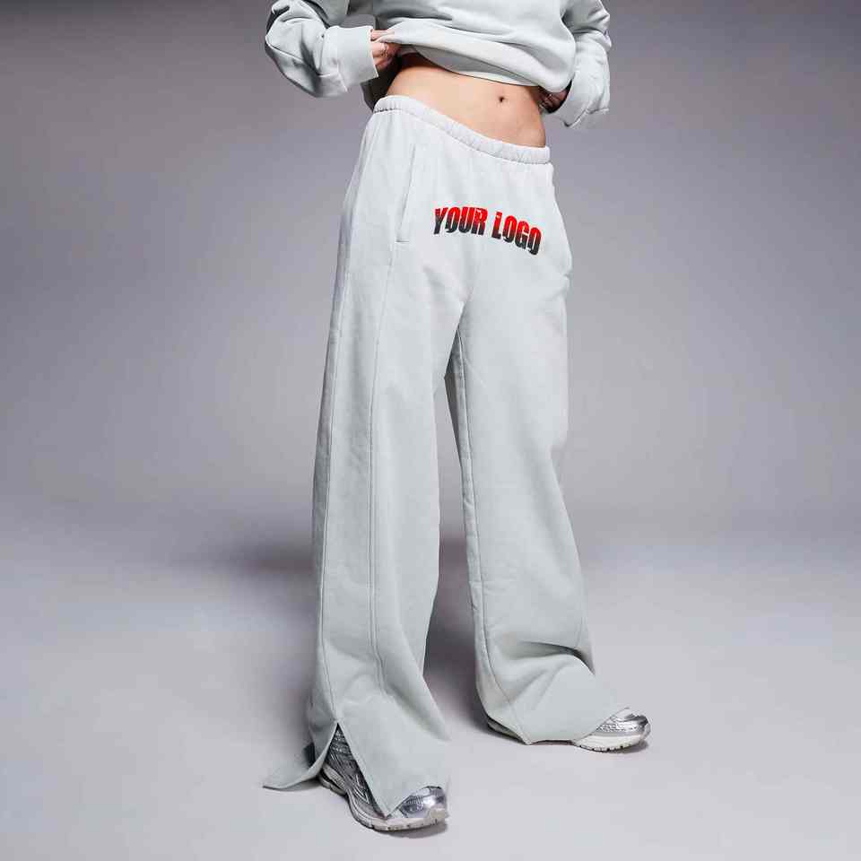 Custom Puff Printed Logo Blank Straight Wide Leg Flared Sweatpants Breathable 100% Cotton Elastic Waistband Lightweight Joggers