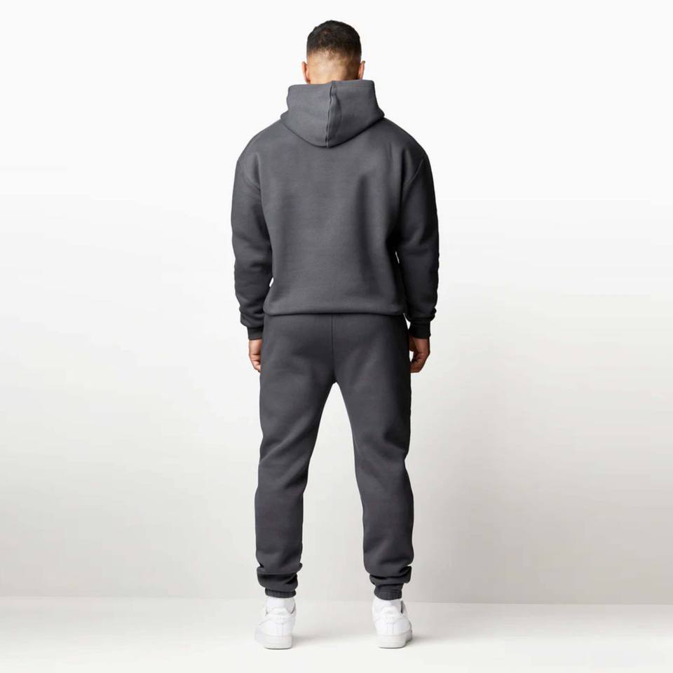 Custom Puff Printing Lightweight Solid Color Jogger Hoodie Set Regular Winter Casual 100% Cotton Drop Shoulder Men Sports
