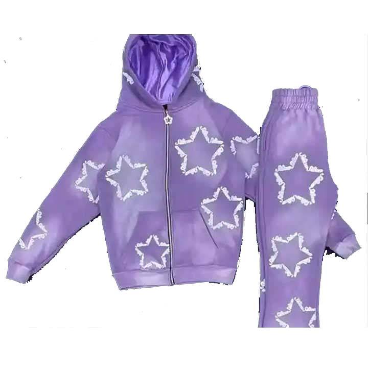 Custom Puff Printing Logo Hoodies Two Pics Set Sportswear 100% Cotton Pullover Long Sleeve Tracksuit For Men