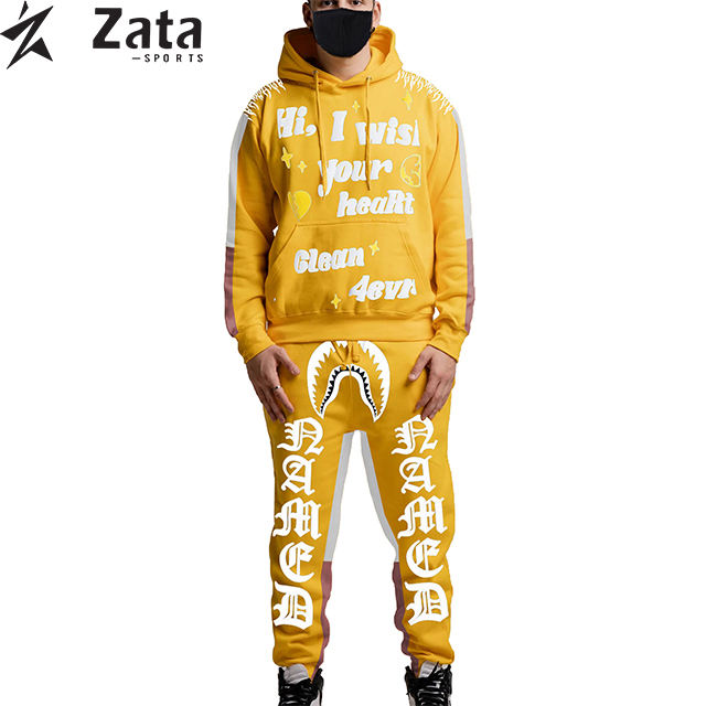 Custom Puff Printing Winter Fleece Breathable Quick Dry Tracksuit Streetwear Hoodie and Sweatpants Set