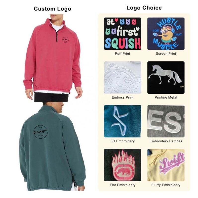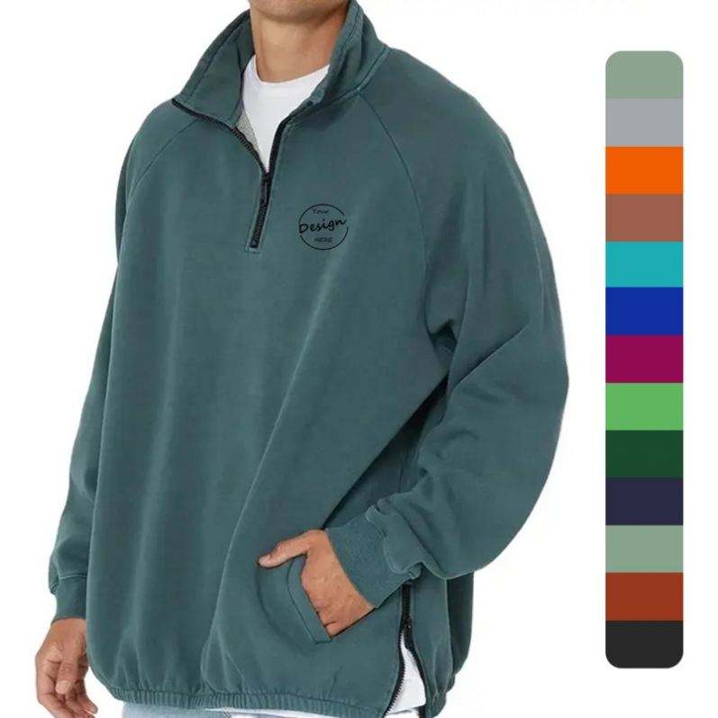 Custom Puff pastry Neck High Quality Heavyweight Pink Hoodie Organic Cotton Custom Logo Blank Oversized Half Zip Sweatshirt Man