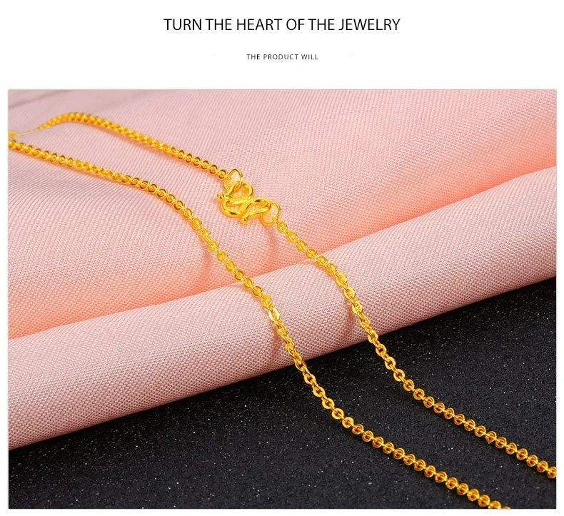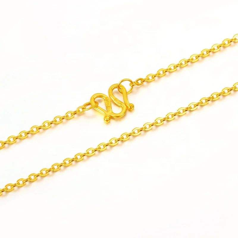 Custom Pure Solid Real 24K Gold Yellow O Shape Chain Cable Clip Shine Necklace Jewelry