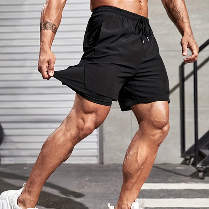 Custom Quick Dry Double Layer Lined Pocket Gym Fitness Basketball Polyester Nylon Men Shorts