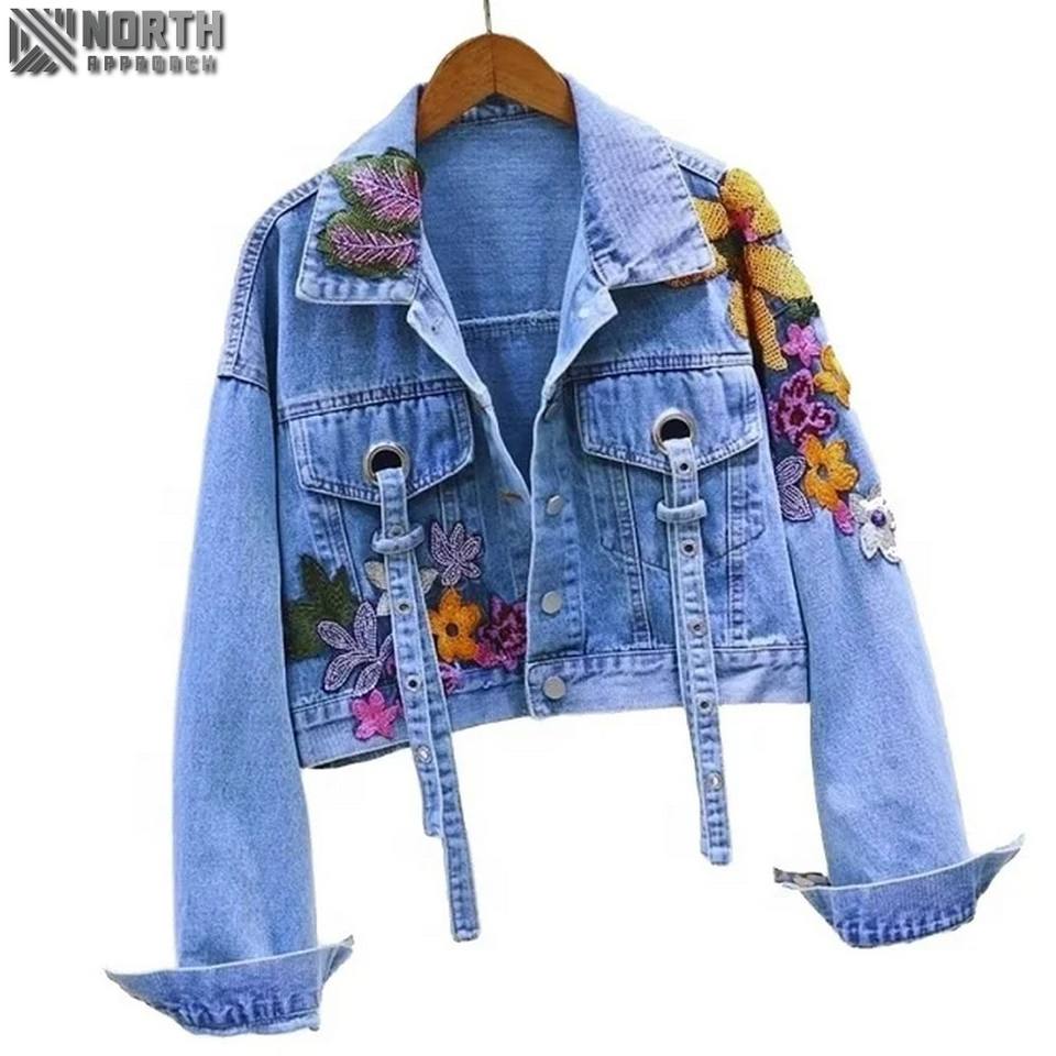 Custom Quilted Women's Denim Jackets For Winter Embroidered All-over Floral Design Trucker Jackets Jeans Jacket Men