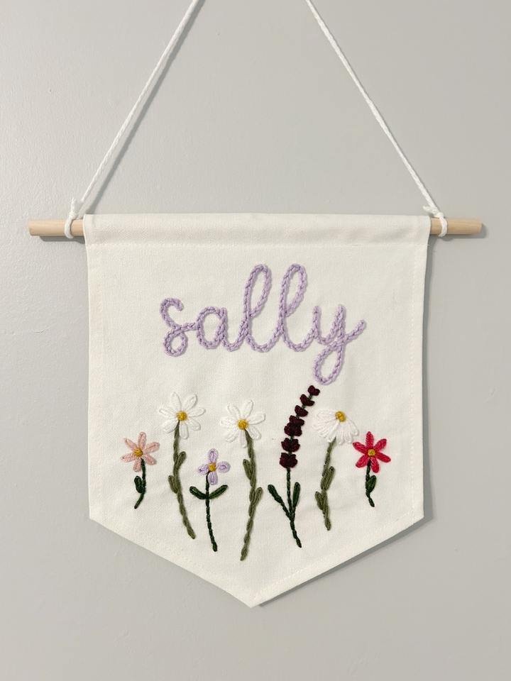 Custom Quote Banner Boho Style Hand Embroidered Cotton Name Decor Personalized Wall Hanging Pennant Flag Art Wall Decor