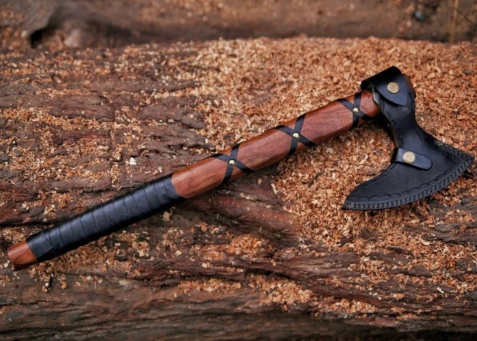 Custom Ragnar Axe with VIKING FORGED CARBON STEEL Axe Head ASH Wood Shaft Leather Sheath-for Camping