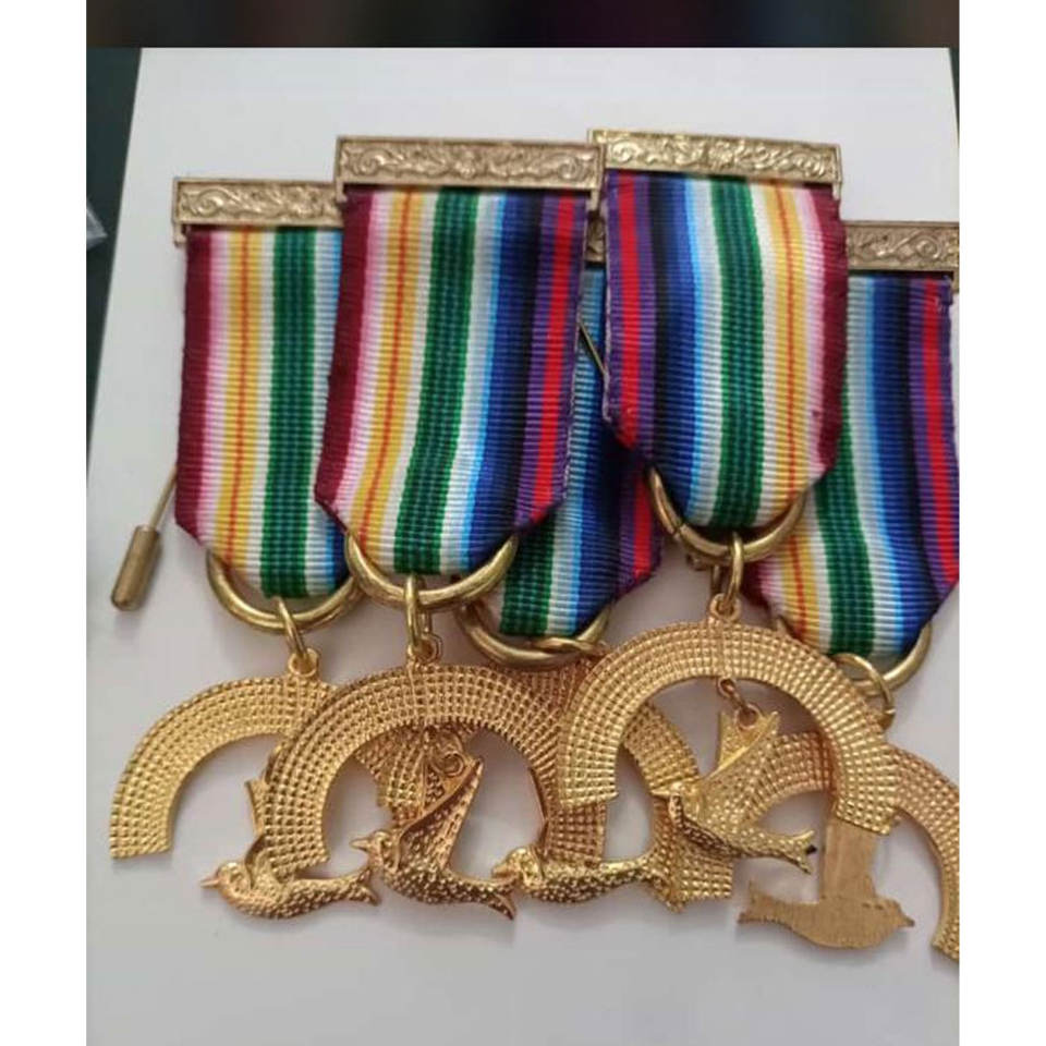 Custom Rainbow Girls Masonic Medals Gold Plated Flying Dove & Arch Pendant with Multicolor Ribbon