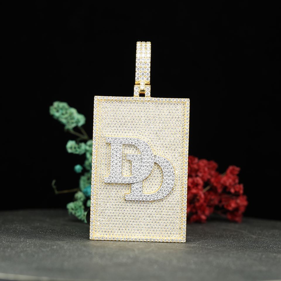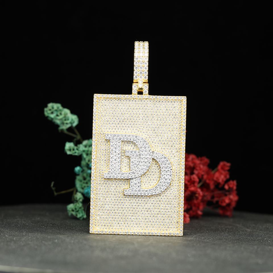 Custom Rectangle Shape Charm Pendant Iced Yellow Gold Plated Hip Hop Moissanite Necklace for Certified Personalized Jewelry Gift
