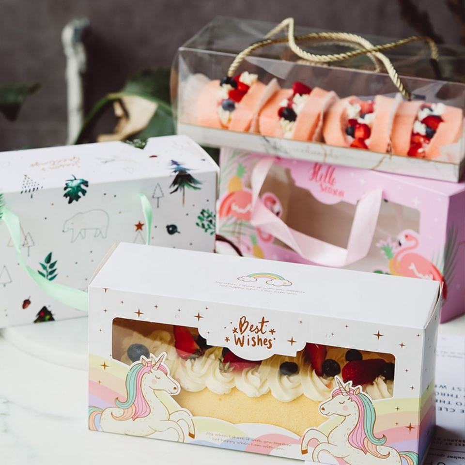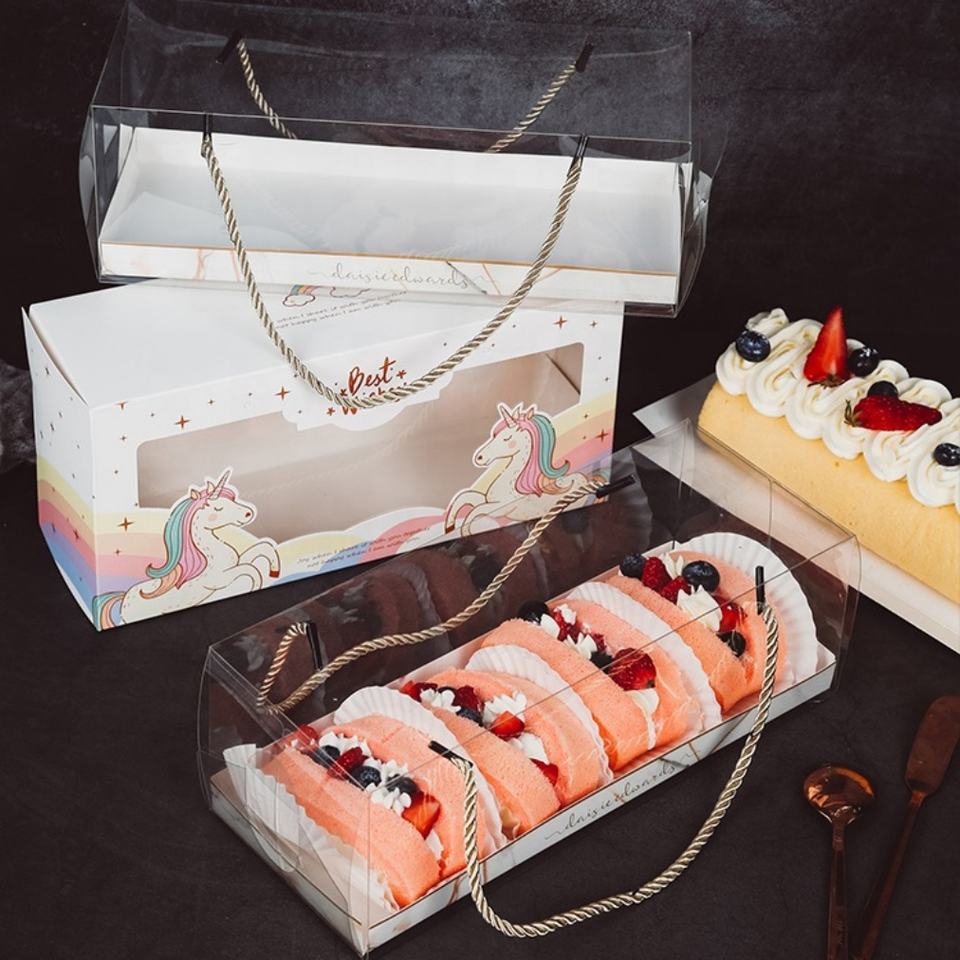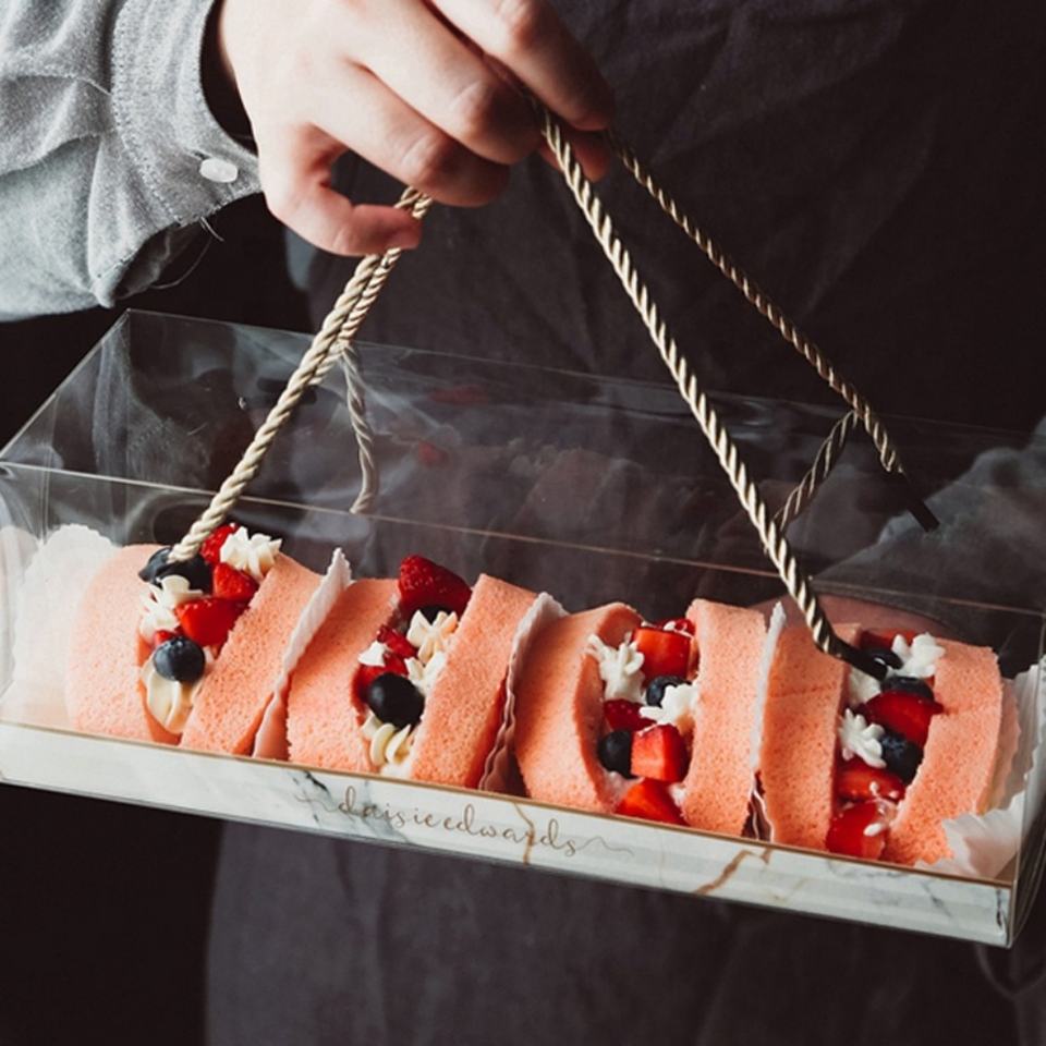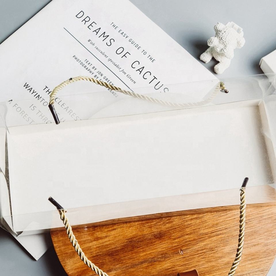 Custom Recyclable Transparent PET with Handle Portable clear Transparent Cake Box