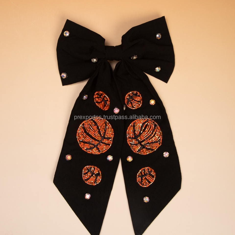 Custom Red Beaded Football Hair Clip Bow Durable Fabric Hair Accessory for Girls Cheer Team Spirit Party Accessory-Bulk Buy