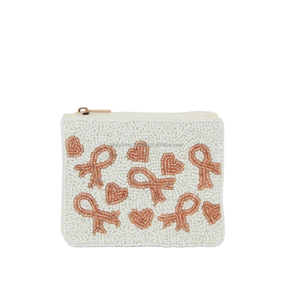 Custom Red Beaded GAME DAY Coin Purse Zipper Wallet Handmade Seed Beads Embroidery Small Pouch Sports Theme Gameday Gift Bag