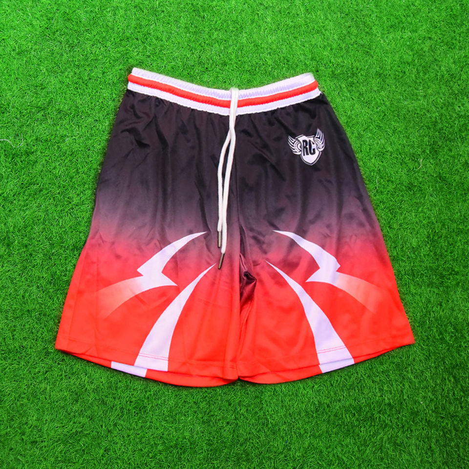 Custom Red Black Athletic Basketball Shorts RC Logo Breathable Anti-Bacterial 100% Polyester Unisex Sports Training Gym Wear