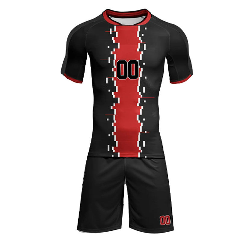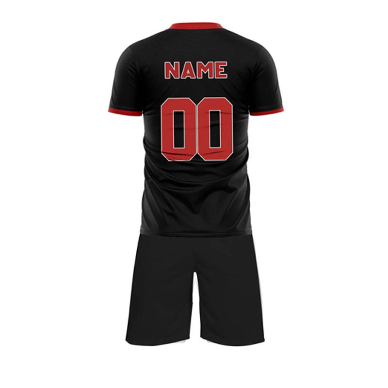 Custom Red/Black Breathable Polyester Soccer Uniform Set with Digital Print Custom Number Sublimation Football Team Jersey Socks
