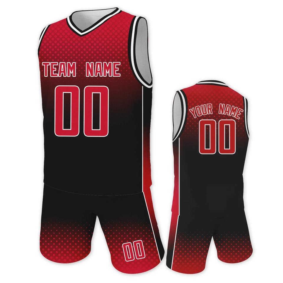 Custom Red Black Sports Basketball Training Uniforms Kids Boys Girls Basketball Jersey and Shorts Kit Printed Team Name Number