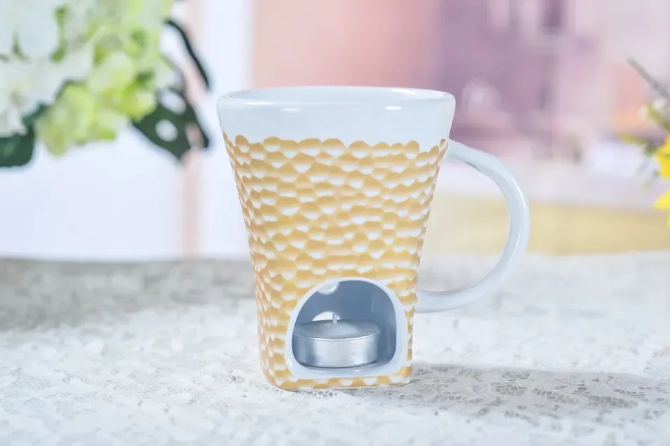 Custom Red Ceramic Fondue Mug Set Handle Printed Stripe Design Eco-Friendly Durable Coffee Hot Chocolate Cheese Heating Cups