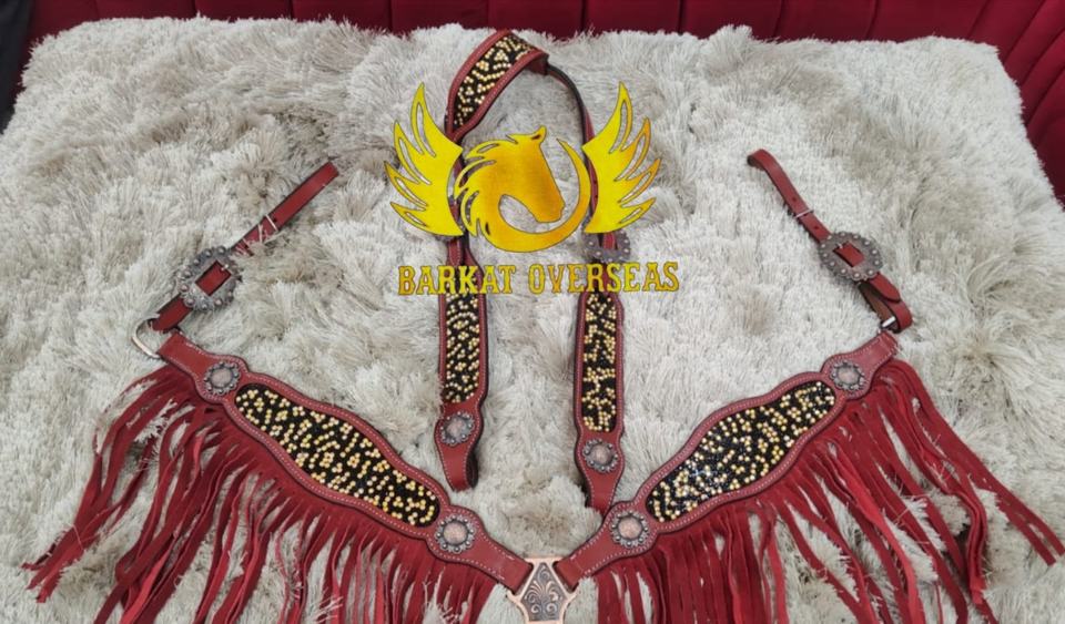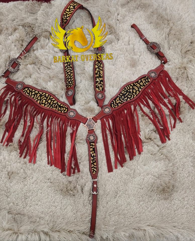 Custom Red Leather Crystal Rhinestones Inlay Genuine Leather Horse Tack Set Lightweight Seasonal western Leather Horse Tack