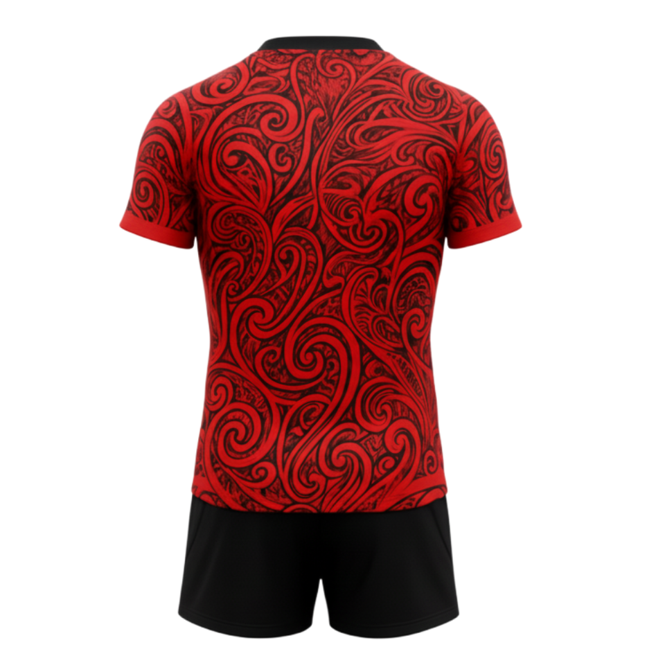 Custom Red Rugby Jersey with Black unique Pattern - Performance Team Uniform - sports uniform