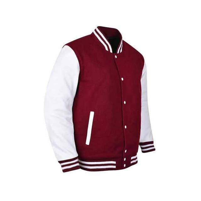 Custom Red Wool Varsity Jacket s, and White Lather Salve 100%Polyester Wool Baseball Jacket, Wool Bomber Jackets Wholesale