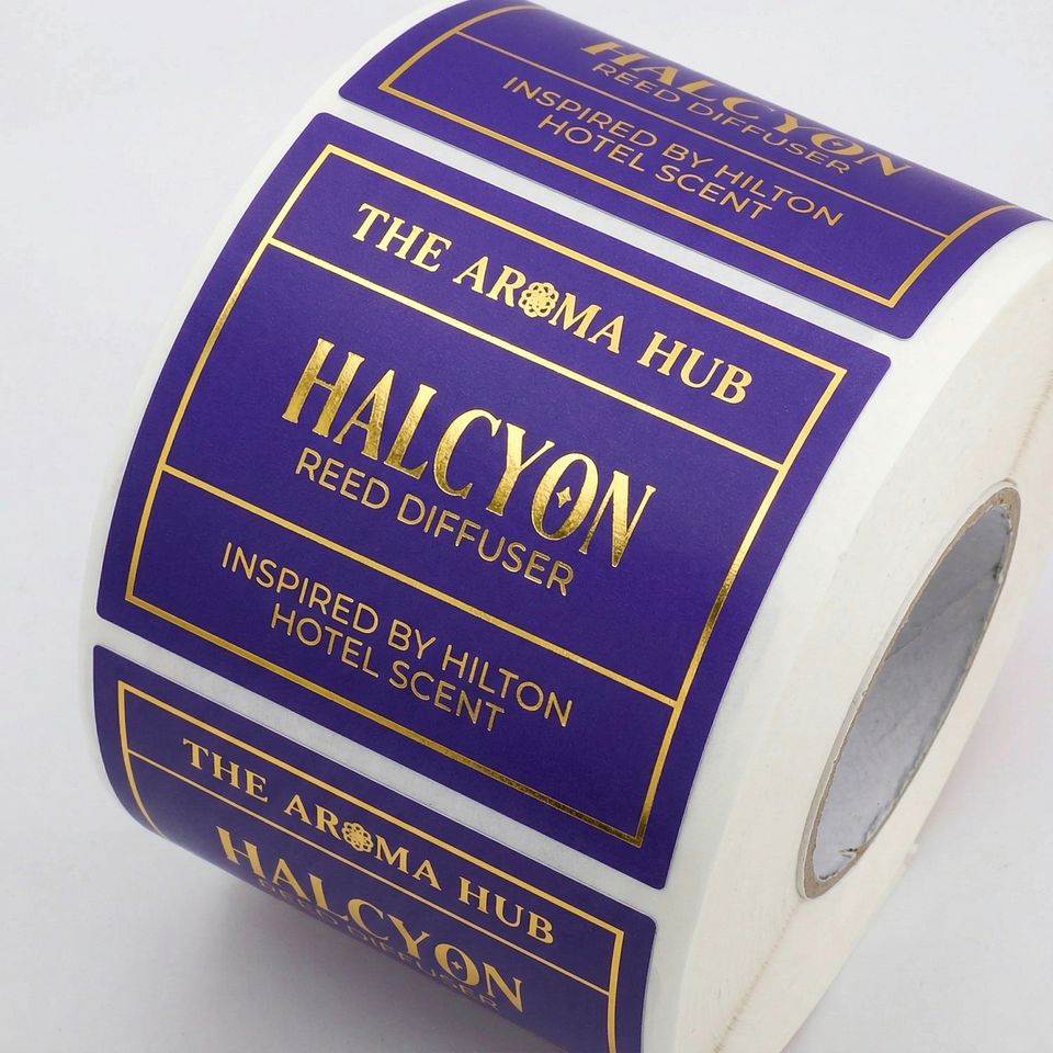 Custom Reed Diffuser Label Purple Gold Foil Hotel Scent Sticker for Reed Diffuser Bottle Packaging