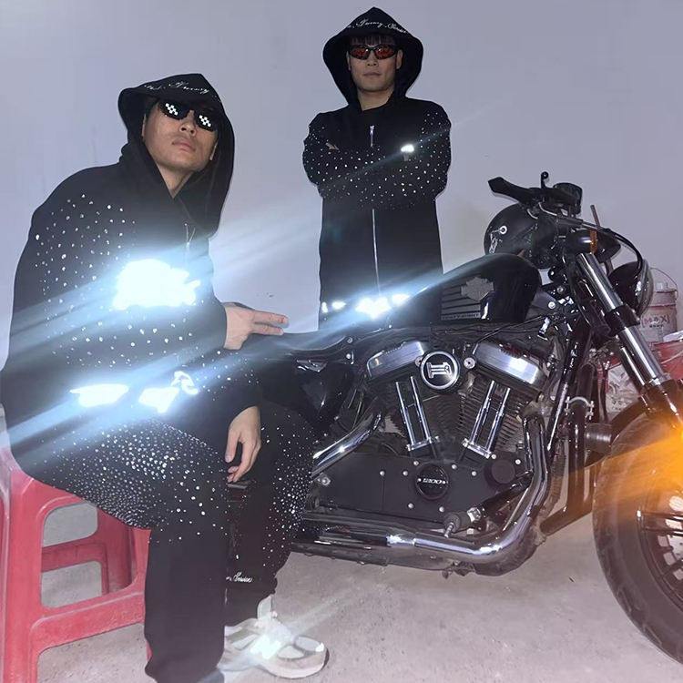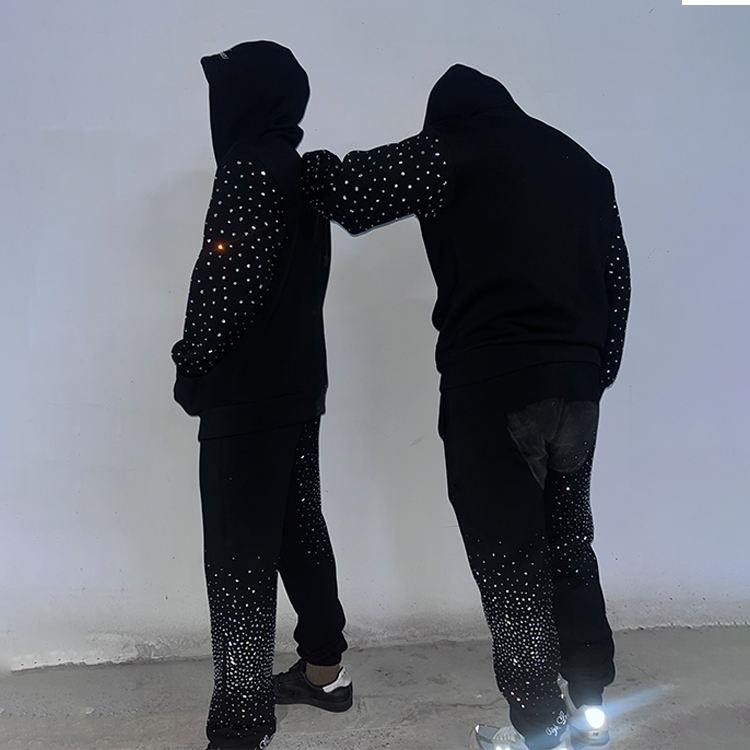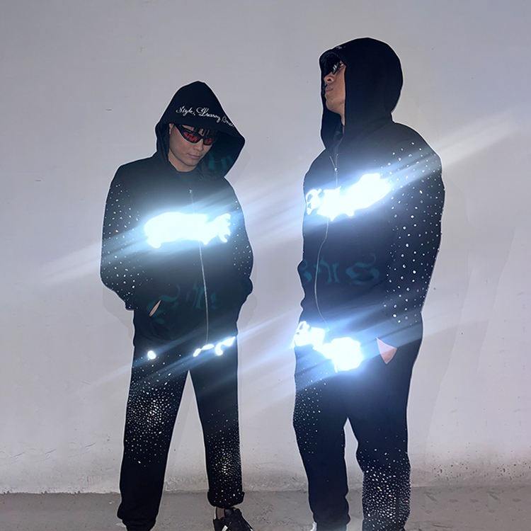 Custom Reflective Design Embroidery Logo Jogger Suit Tracksuits Space Cotton Hoodies and Sweatpants Set Rhinestone Tracksuit Men