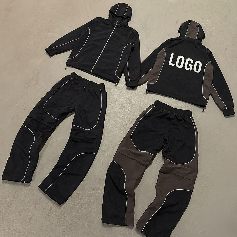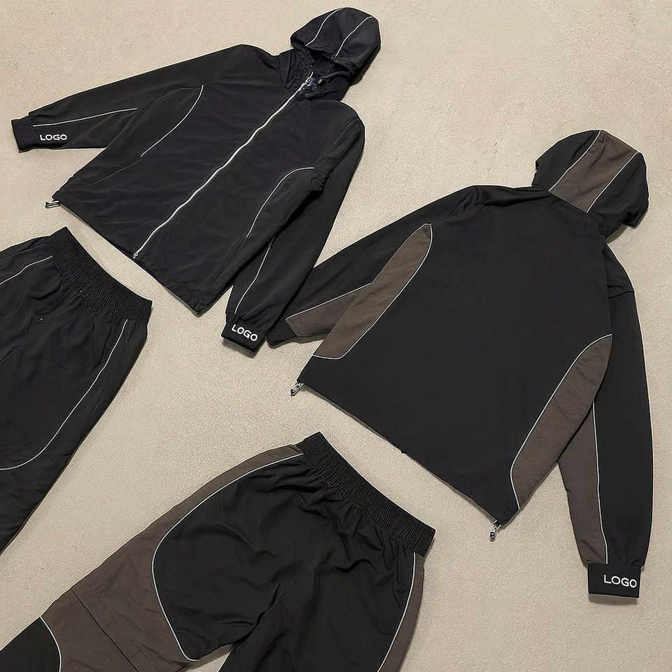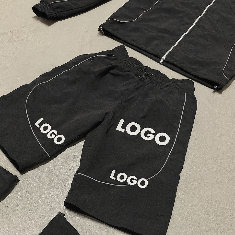 Custom Reflective Windbreaker Jacket and Nylon Track Pants Zipper Nylon Shorts Sweat suit Men Windbreaker Tracksuit