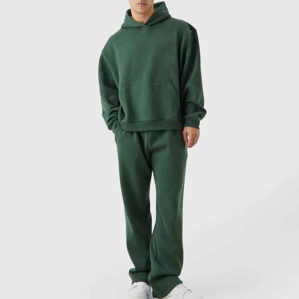 Custom Regular Heavyweight Acid Wash Solid Joggers Suits Set Two Piece Pullover Hoodie Wide Leg Sweatpants Tracksuit