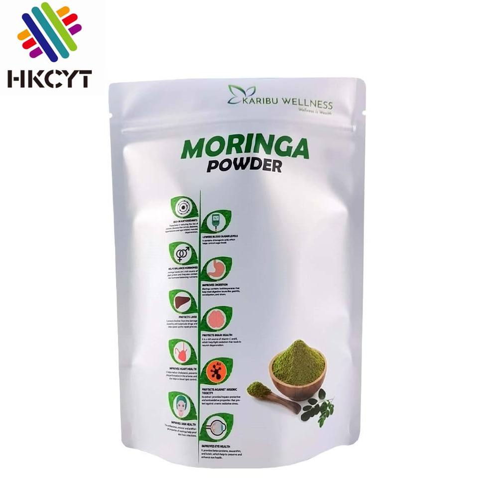 Custom Resealable Ziplock Bag Printed Logo Plastic Aluminum Foil Zipper Moringa Powder Bags