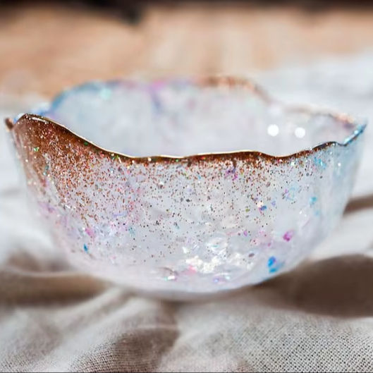 Custom Resin Bowl: Decorative Key Dish with Gold Silver Edge