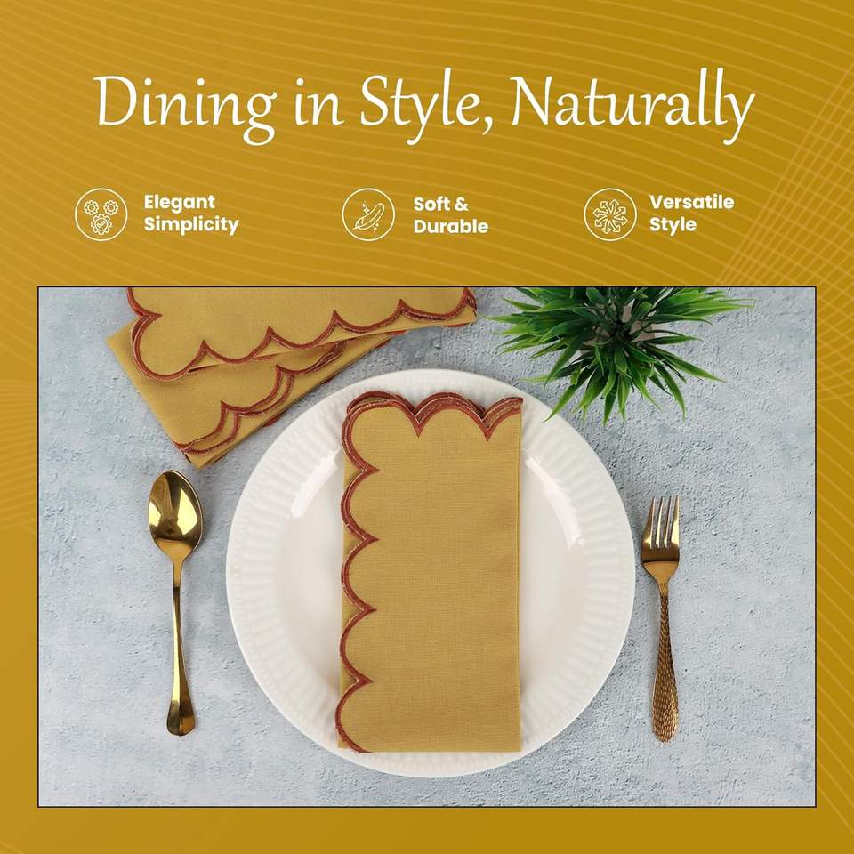 Embroidered Scalloped Home Hotel Elegant Table Linen Cotton Napkin