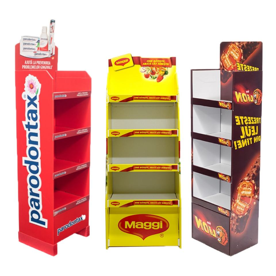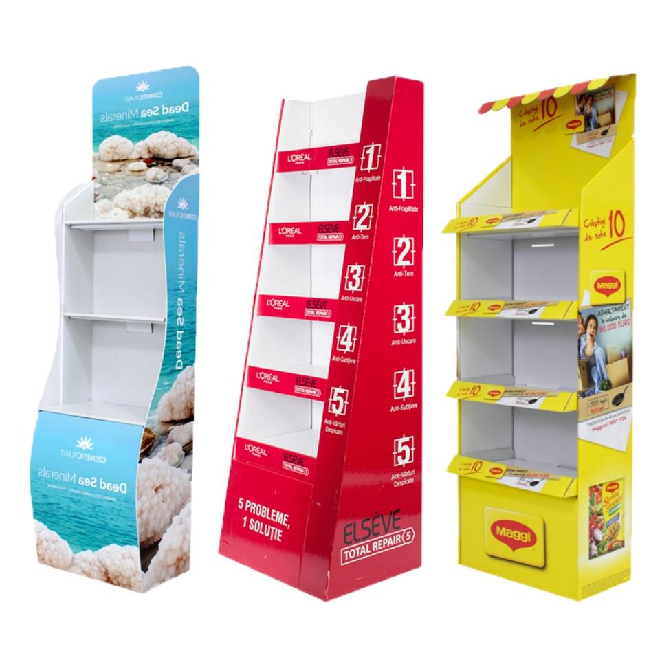 Custom Retail Store Foldable Cardboard Product Paper Display Racks Free Standing POS Corrugated Cardboard Floor Display Stands