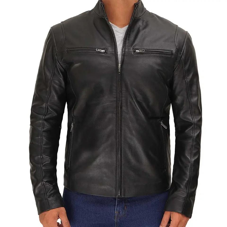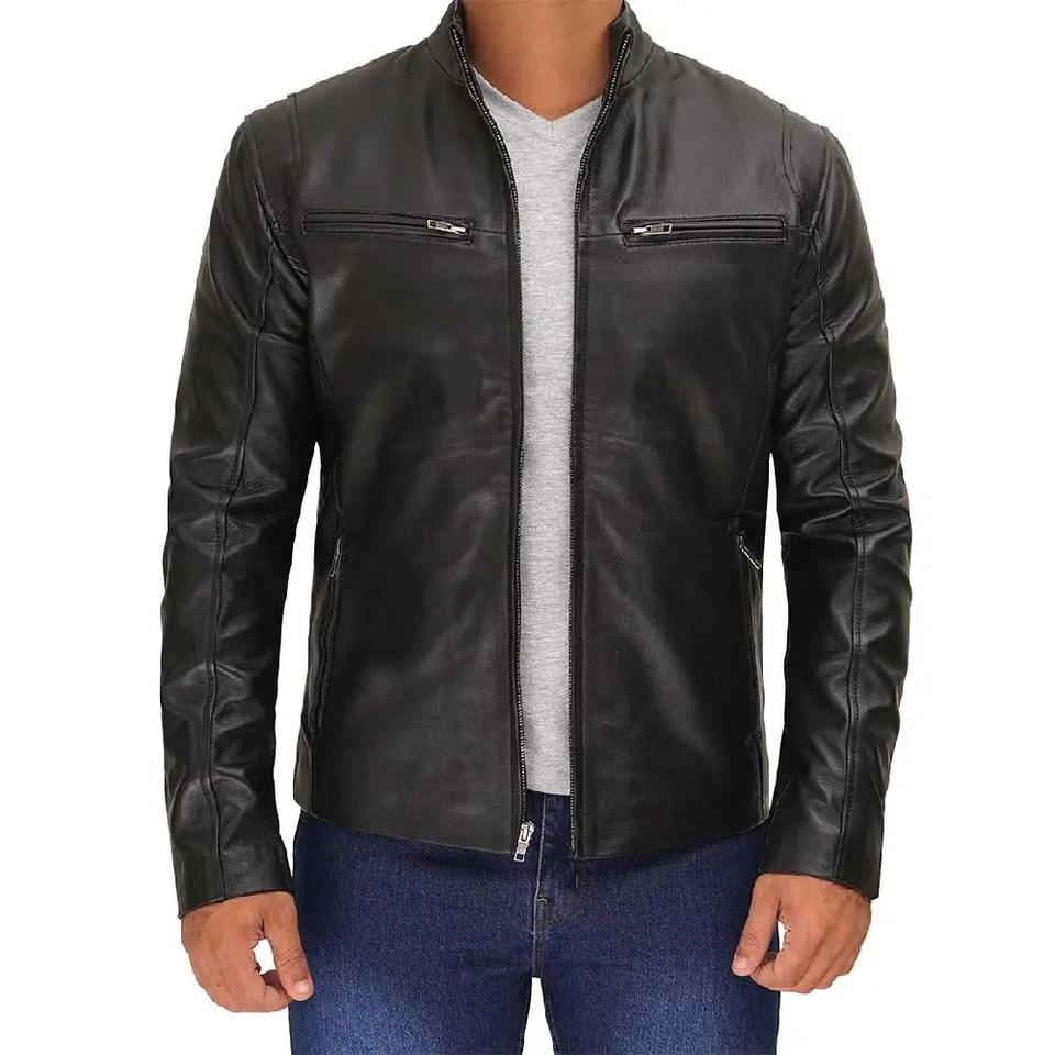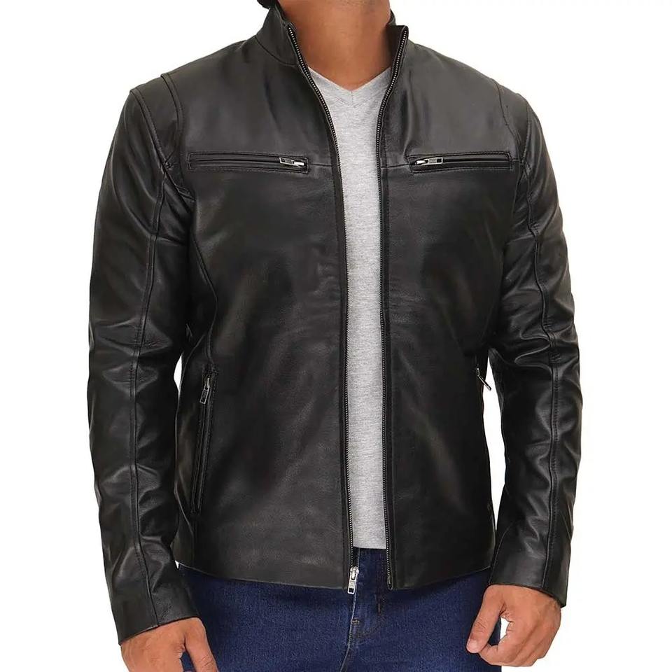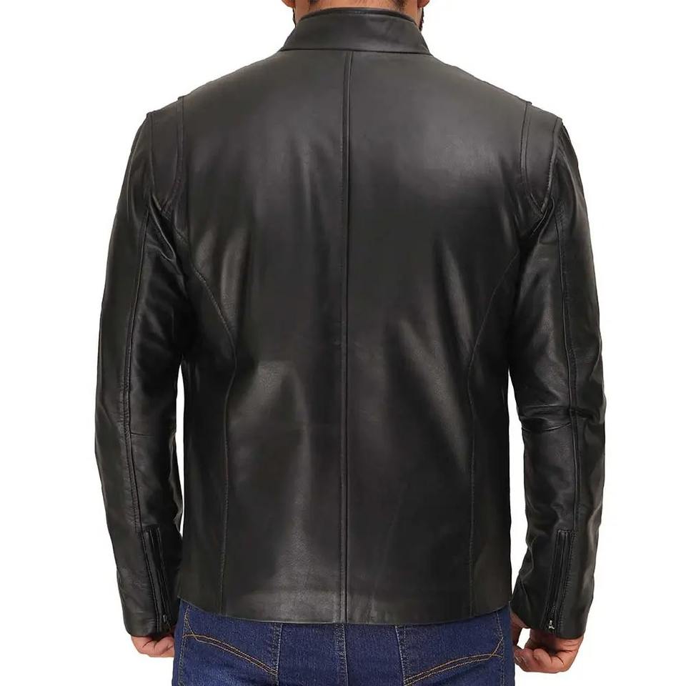 Custom Retro Classic Blue Leather Racing Jacket for Men Casual Winter Oem Logo Patch Design Motorcycle Jacket