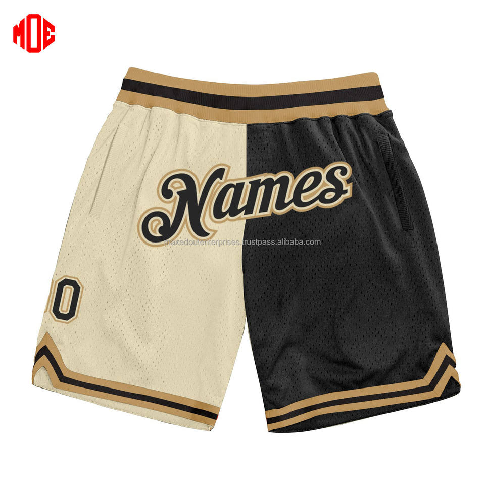 Custom Retro College Basketball Shorts High Street Elastic Waist-Black Amethyst Mesh Fitness Shorts Two Deep Side Hem Pockets