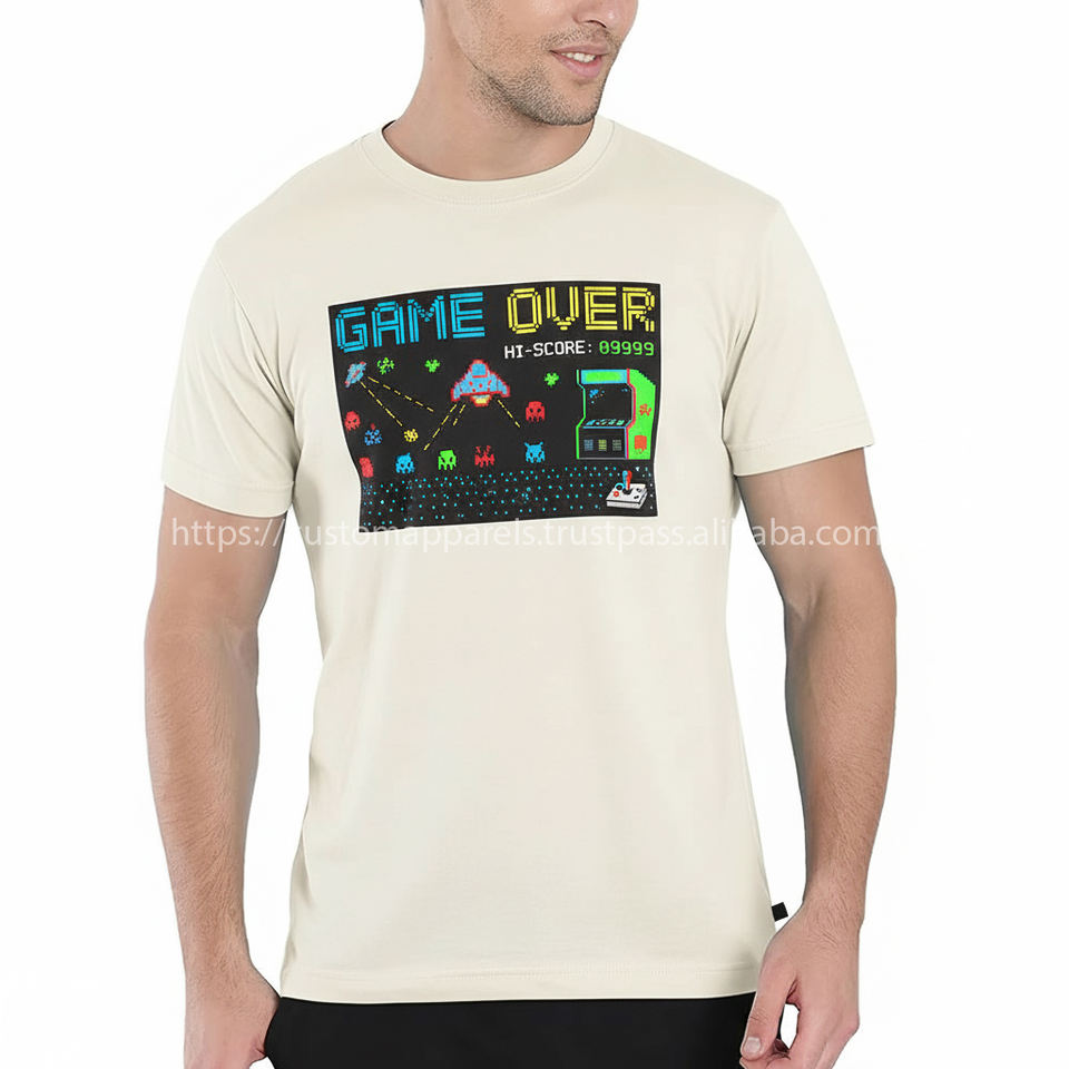 Custom Retro Gaming Graphic T-Shirt Vintage 80s 90s Arcade Gamer Streetwear Oversized Cotton Pearl Color Tee