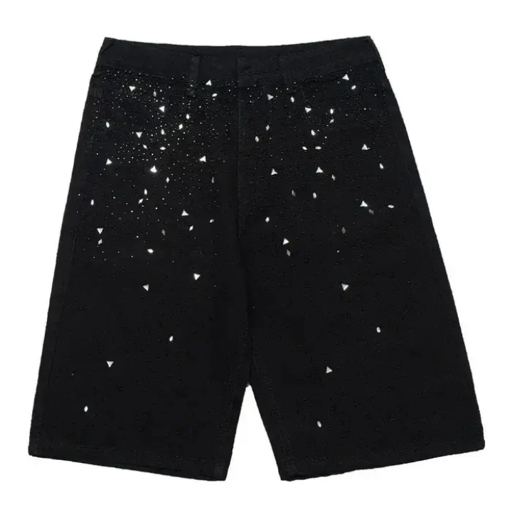 Custom Rhinestone Denim Shorts for Men Embellished Stylish Jean Shorts - Premium Streetwear Manufacturer Custom Streetwear