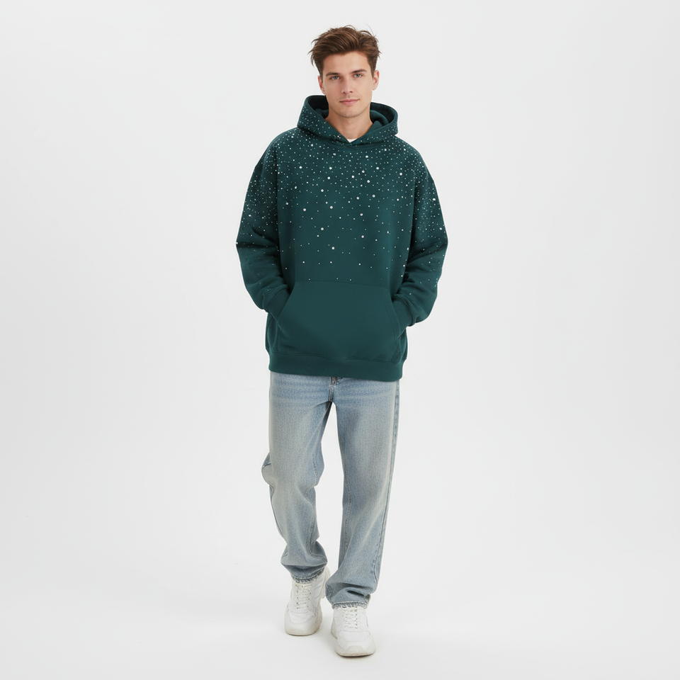 Custom Rhinestone Hoodie Unisex High Quality Custom Diamond Cotton Fleece Pullover Men Rhinestone Hoodie