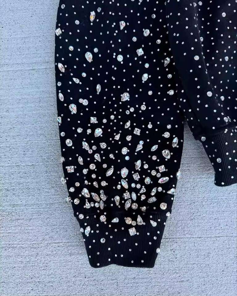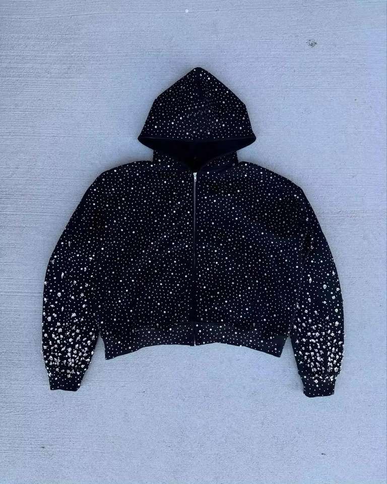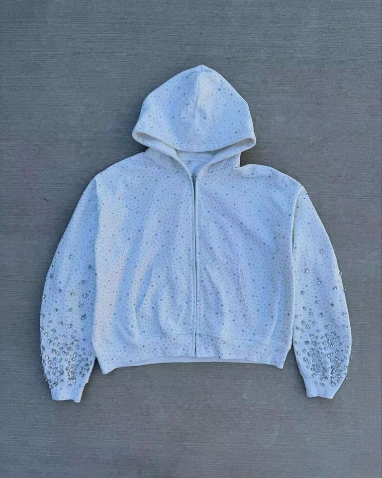 Custom Rhinestone Jacket Man Crystal Streetwear Oversized Baggy Applique Patch Men Zip up Denim Hoodie