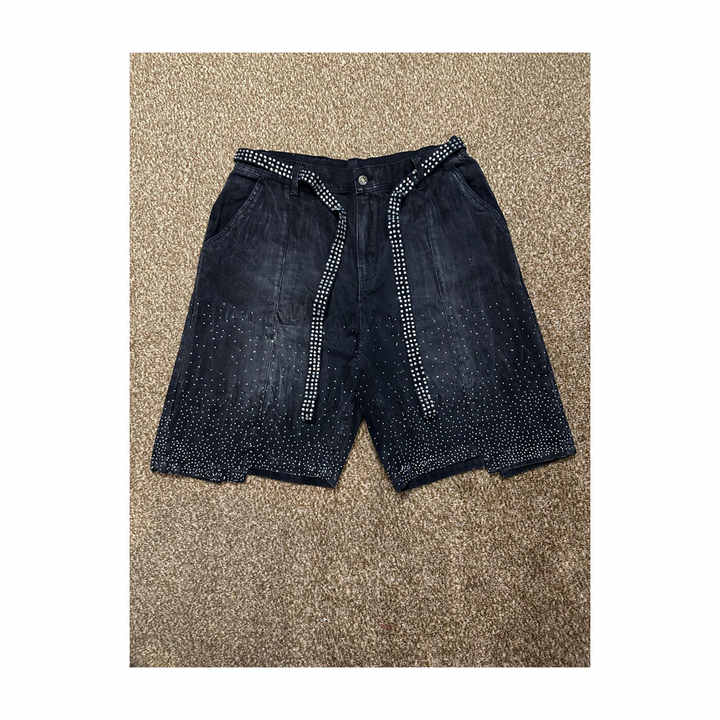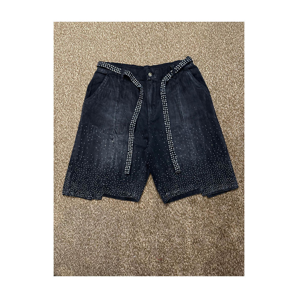 Custom Rhinestone Jeans Shorts Sun Faded Denim Shorts For Men With Jords On Jeans Gym Shorts For Sale