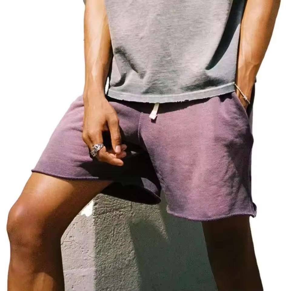 Custom Rhinestone Logo Manufacturer Streetwear Vintage Oversized Distressed Stone Acid Wash Quick Dry Jogging Shorts for Men
