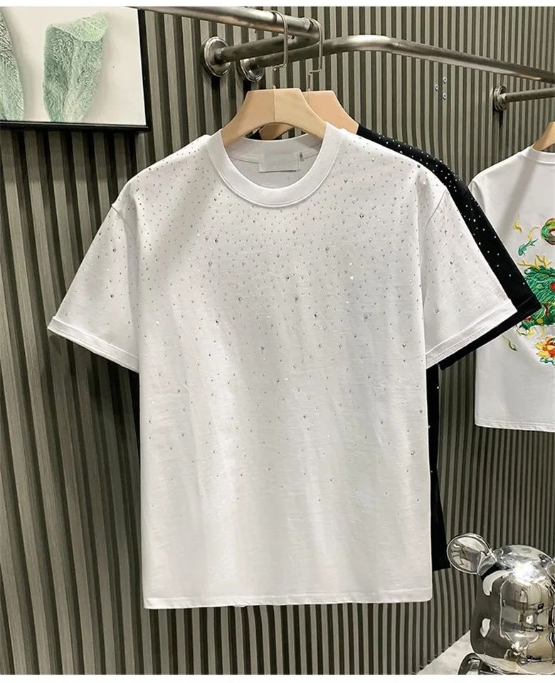 Custom Rhinestone O-Neck Short Sleeve T-shirt Trendy Drop Shoulder Hip Hop Tshirt for Men